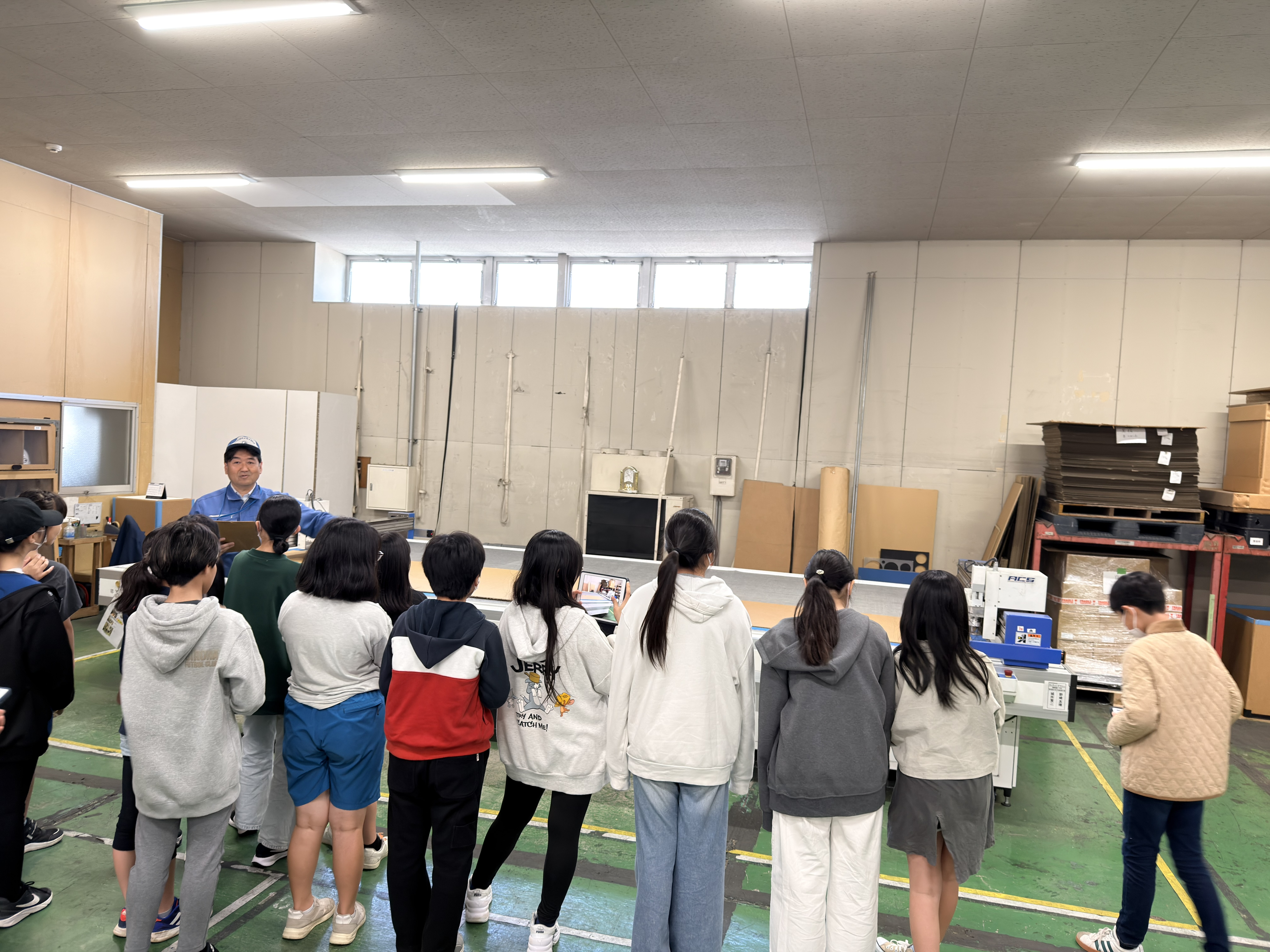 巨大な原紙や加工の迫力に目を輝かせ、触って・乗って・撮って学ぶ時間になりました。